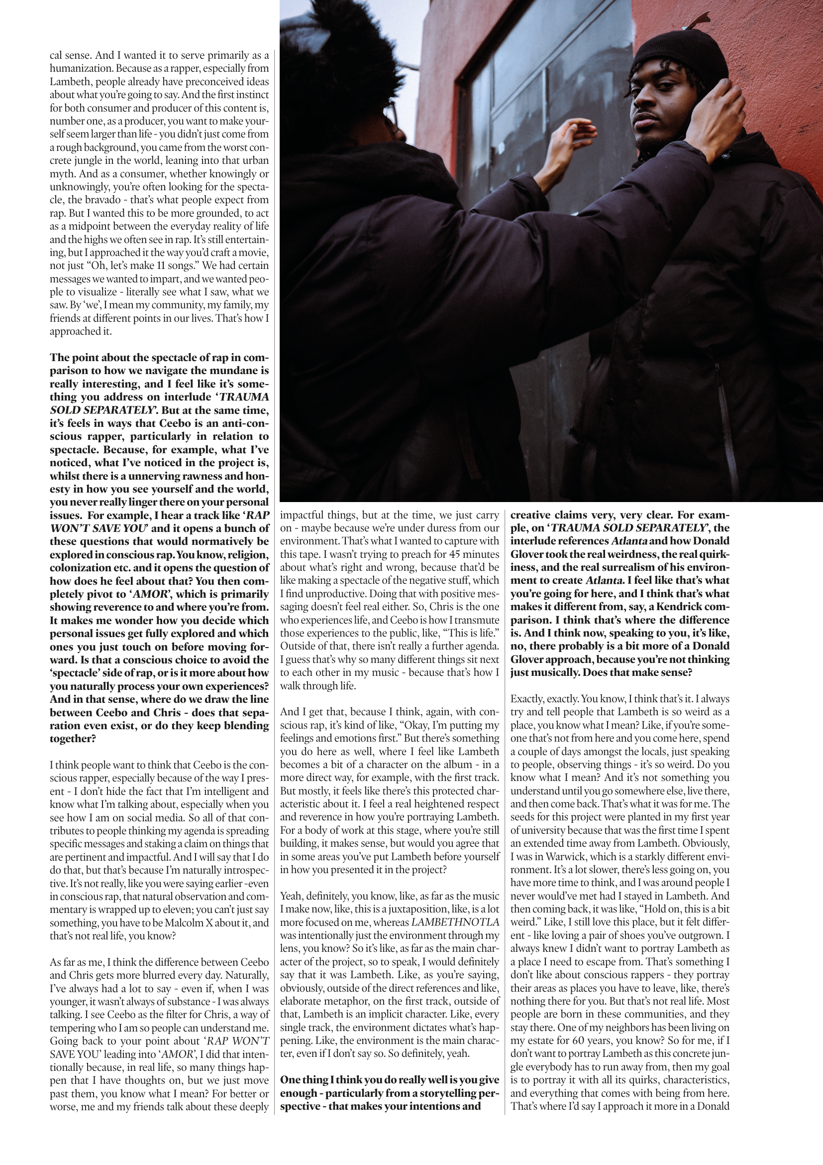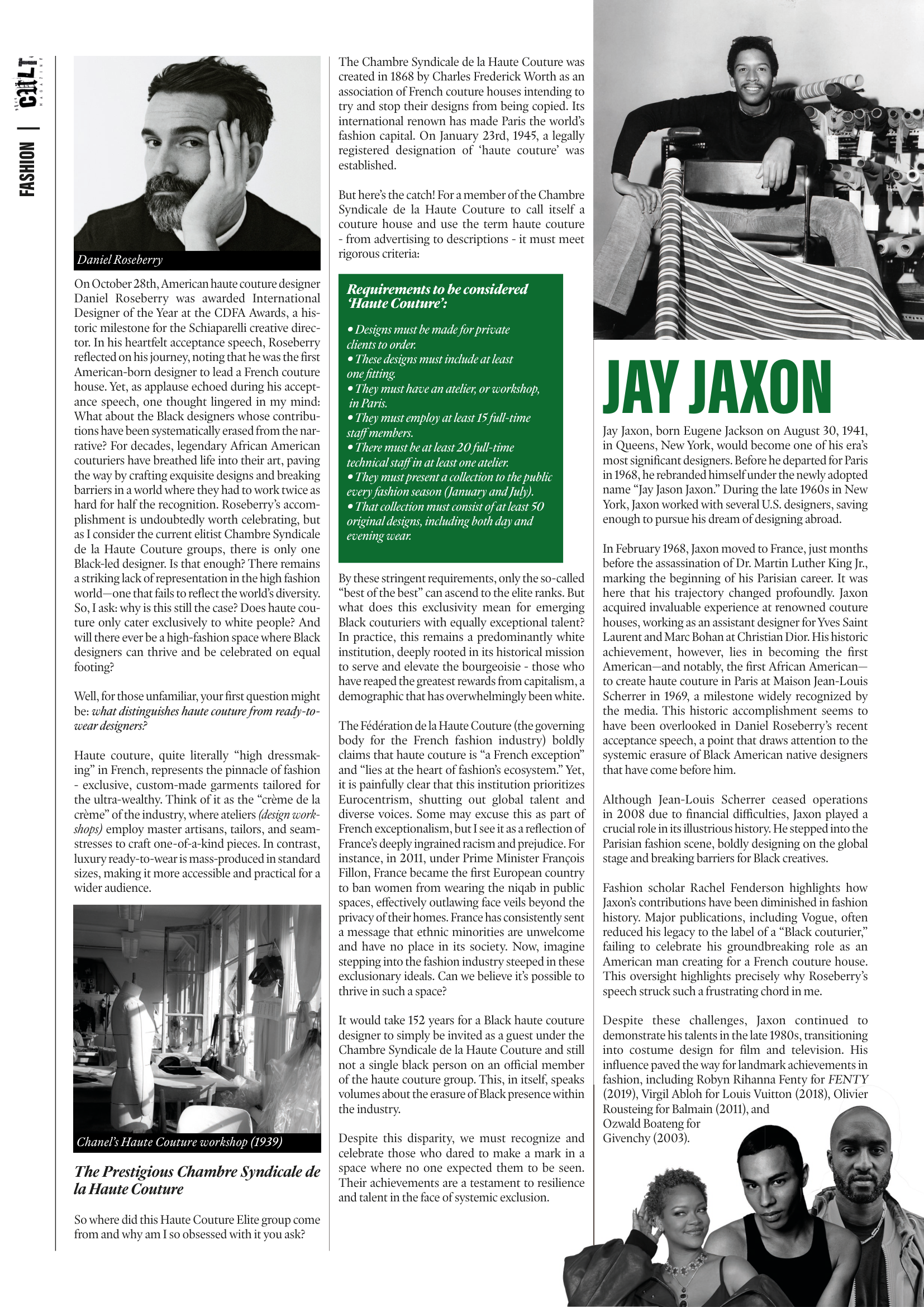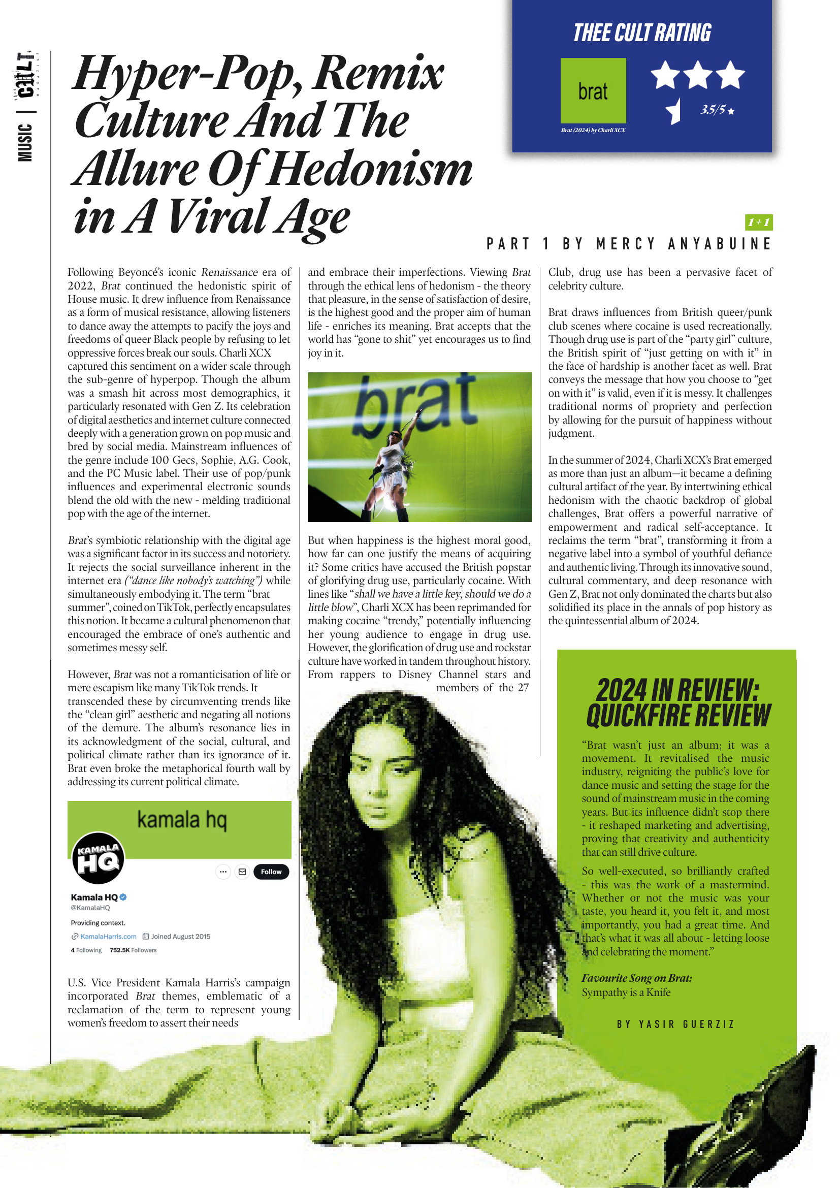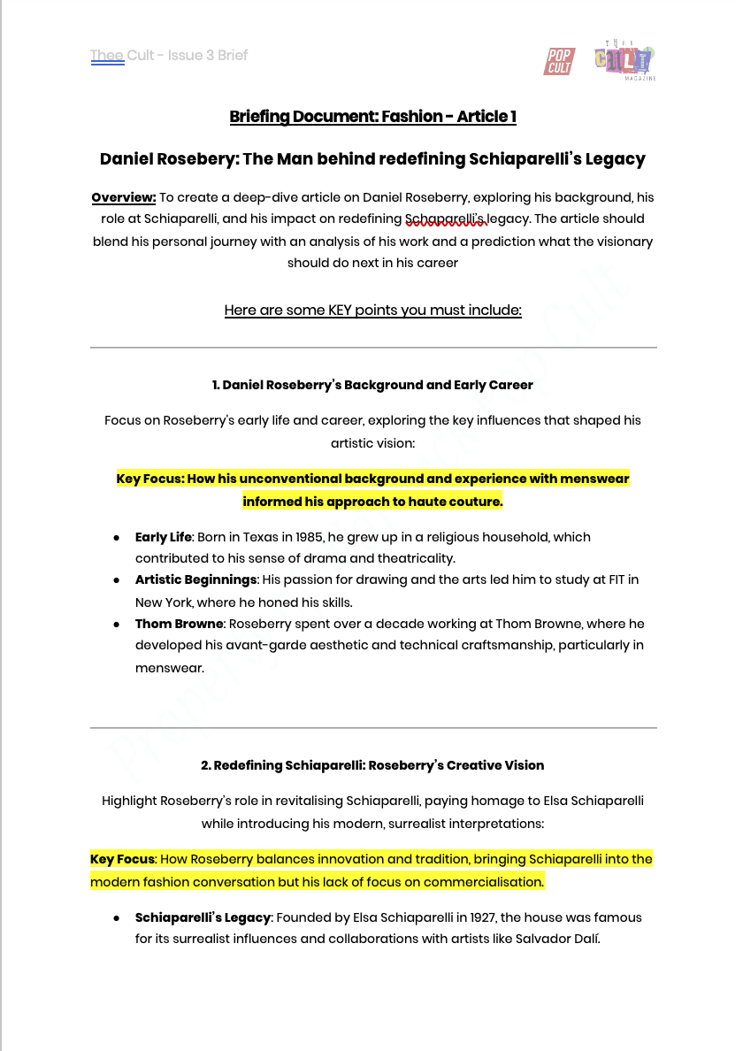 For Issue 3 of Thee Cult Magazine, I led the project as Editor-in-Chief and Creative Director, overseeing the publication’s structural redesign, editorial refinement, visual identity evolution and full-scale production. This issue marked the transition from experimental student magazine to a deliberately structured editorial platform, with formalised sections, a defined cover feature and a strengthened internal review process. My role spanned commissioning and editing writers, redesigning the logo, directing photography and executing the complete layout in InDesign. Issue 3 represents the consolidation of creative ambition into systems - transforming Thee Cult from a growing project into a disciplined publication.Issue 3 marked a defining shift for Thee Cult Magazine, as it established a distinct identity separate from Pop Cult and formalised the publication as a scalable editorial platform. Built around a "2024 in Review" theme - a revisited failed concept from 2024's The Contributors' Issue - the issue focused on refining both visual identity and internal structure. Central to this shift was a redesign of the magazine’s visual language, beginning with the logo. Rather than abandoning the scrapbook aesthetic established in earlier issues, we simplified and abstracted it into a more controlled, adaptable form.This shift was directly tied to the decision to launch a dedicated social media presence for Thee Cult. Previously, the magazine had been promoted through the Warwick Pop Cult account, but Issue 3 marked the point at which it began to operate as a distinct entity with its own platform and visual identity. The redesigned logo and simplified system allowed the brand to translate effectively across this new context, supporting a more cohesive and recognisable rollout.As Editor-in-Chief and Creative Director, I oversaw the expansion of the magazine’s sectional structure across culture, music, fashion, and film & TV, managing section editors while also operating directly as Culture Editor. I led the development of editorial direction by defining pitch briefs, often building them into fully realised concepts before guiding contributors through a structured editorial process that included written feedback and, where possible, live editing sessions.Alongside the development of a distinct visual identity, Issue 3 was supported by a more intentional social media rollout, which functioned not only as a promotional tool but as part of the magazine’s editorial workflow. With the launch of a dedicated Thee Cult platform, social media became a primary space for communicating briefs, promoting calls for submissions, and maintaining momentum across the production cycle.The assets, designed in Adobe Photoshop, were built to align with the updated visual system - balancing consistency with enough flexibility to accommodate different types of content, from contributor call-outs to feature highlights and section-specific posts. These visuals were used to guide contributors through the process, reinforce deadlines, and establish a recognisable presence as the magazine expanded beyond its original context within Warwick Pop Cult.A major development in Issue 3 was the transition into Adobe InDesign, marking a shift toward more professionalised layout and production processes. Alongside Yasir Guerziz, I began learning InDesign from scratch in the months leading up to the issue (October - December 2025), translating our existing Photoshop-based approach into the more structured editorial workflow of InDesign. This period was not only about learning a new software, but about understanding how InDesign could support the construction of a scalable design system. While writing was still being commissioned and developed, we used this time to experiment with layouts, master pages, and typographic structures - establishing a foundation that could later be adapted once final content was delivered. Through working in InDesign, we defined core elements of the magazine’s visual identity, including a clear typographic hierarchy, consistent grid systems, and a simplified approach to section-based design. These decisions allowed the magazine to move toward a more cohesive and recognisable visual language, while still retaining flexibility across different articles and formats.Importantly, this phase also strengthened our confidence as designers. By building and applying these systems directly within InDesign across both editorial and promotional outputs, the visual language of Thee Cult became something we could actively operate within - akin to becoming fluent in a language. This shift extended beyond layout into creative direction more broadly. Establishing a consistent visual language allowed for greater control over how the magazine was perceived and experienced across every touchpoint, from page design to social media and aesthetic tone. As Creative Director, this meant moving from making individual design decisions to shaping a cohesive world - where typography, layout, imagery and tone all worked together to support a unified editorial identity. Through this process, design became a framework for decision making across the publication. Rather than responding to content on a case-by-case basis, the established system provided clarity on how different elements should be treated, allowing the magazine to operate with greater intention, consistency and authority.
